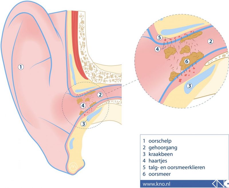 - ouder worden (met te snelle indikking van oorsmeer, zodat het oorsmeer hard, brokkelig en scherp wordt);