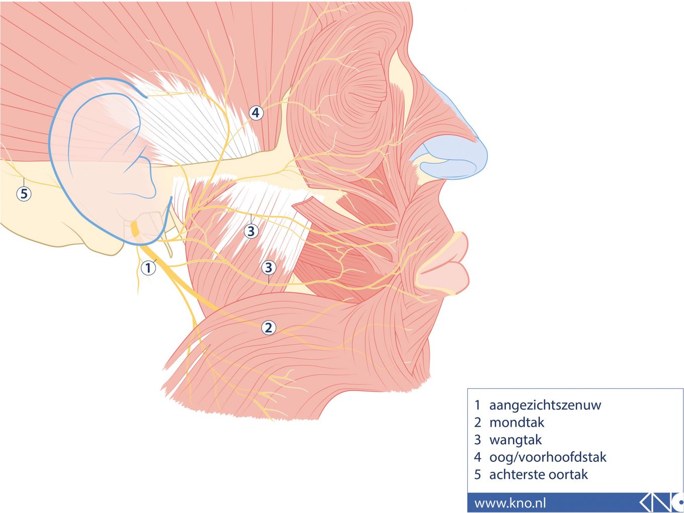 Beide kanten van uw gezicht hebben een nervus facialis ofwel aangezichtszenuw. Deze zenuw zorgt voor de gelaatsexpressie van het aangezicht (mimiek). Deze zenuw regelt ook het sluiten van uw ogen en mond.